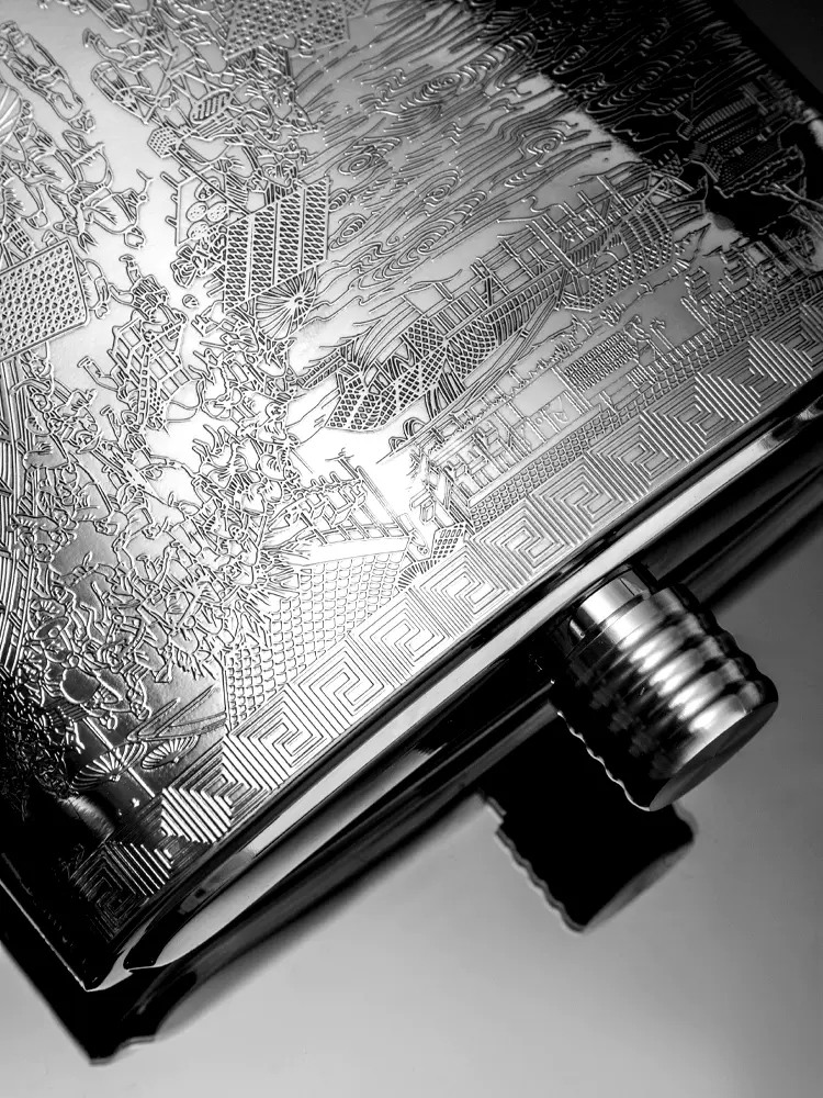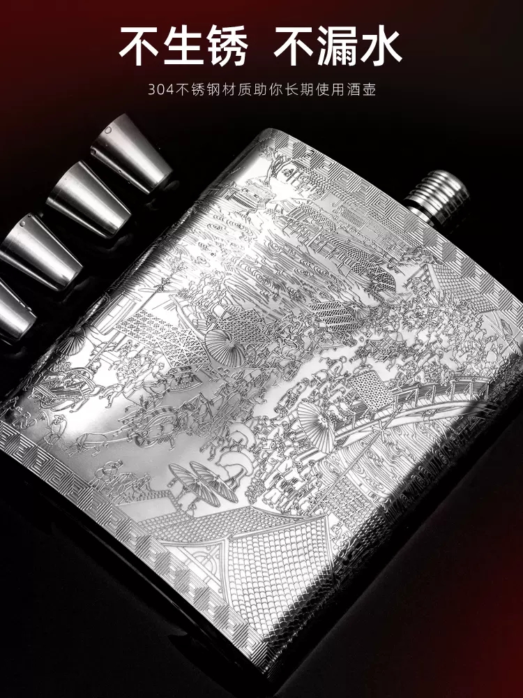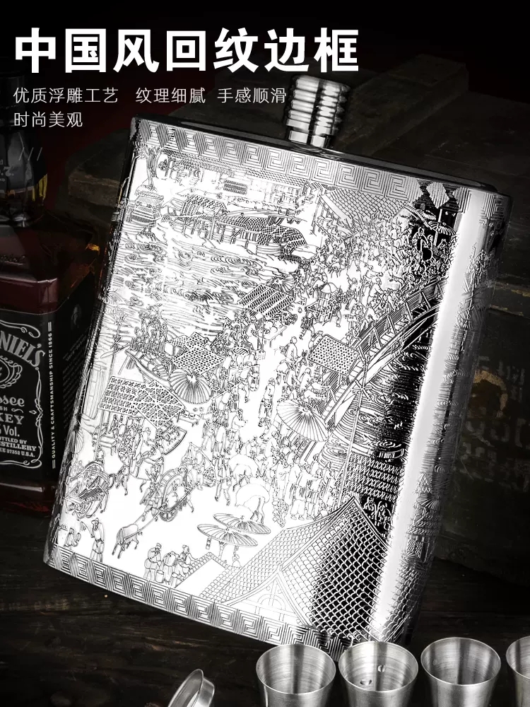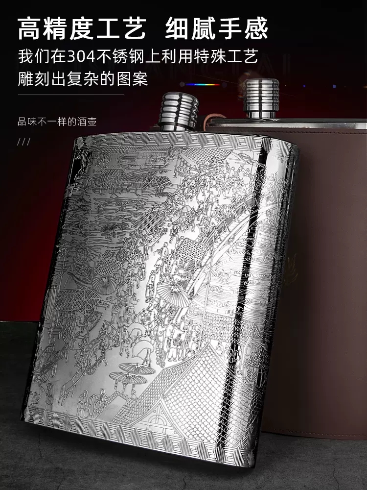 Upscale new Qingming Upper River Tuttle Wine Jug Thickening 304 stainless steel Portable Large Capacity Flat Liquor Bottle-Taobao