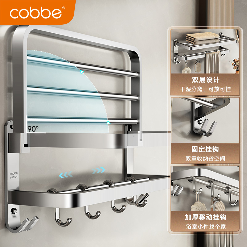 Cabe 304 stainless steel wool towel rack free of punch toilet shelving bathroom shelf bath towels Bathroom Pendant-Taobao