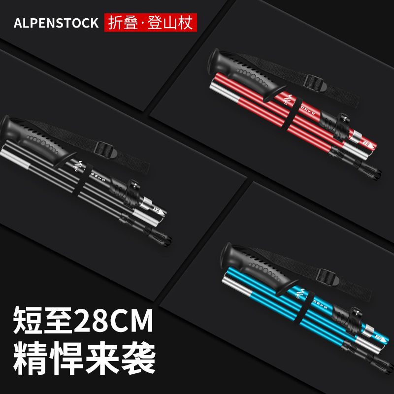 Mountaineering Stick Ultra Light Portable Folding Cane Professional Outdoor Climbing Mountain Telescopic Crutch Hiking Aluminum Alloy Row Mountain Guard-Taobao