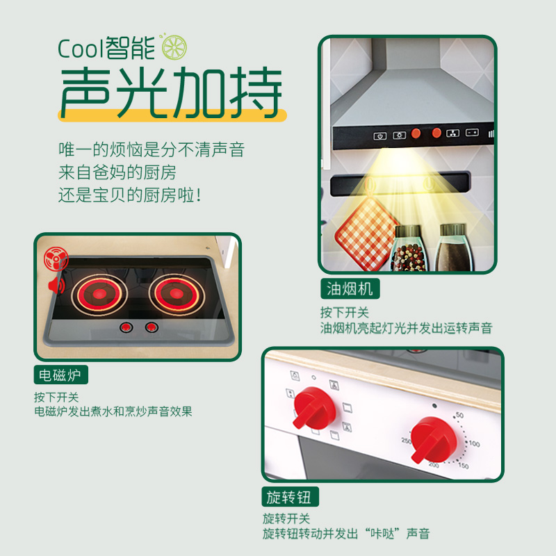 Hape Kitchen Sound Optoelectronics Male Girl's Home Puzzle Emulation Cooking Toy Wooden 3-year-old Birthday Gift-Taobao