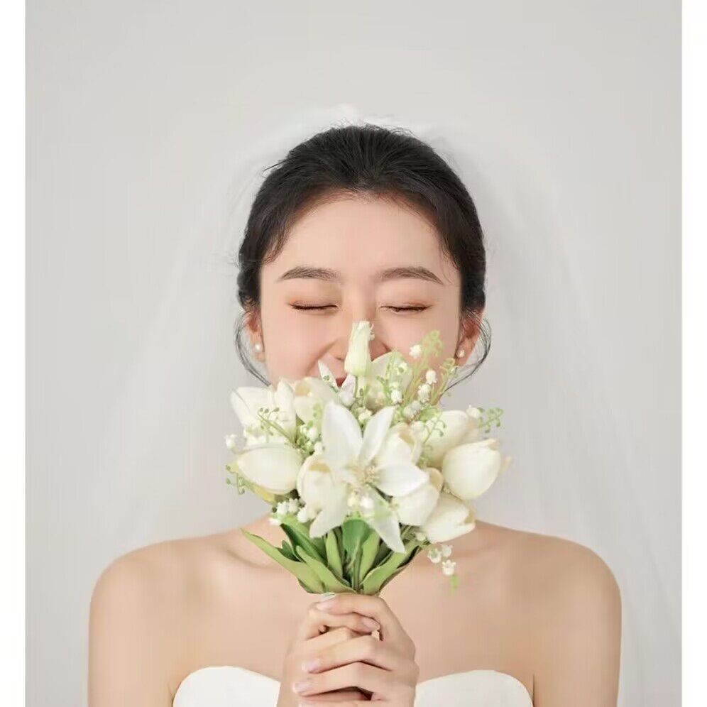 Emulated Playnet Red Brigade slapping white tulip bride wedding photo by hand holding a fancy flower shadow building to shoot props-Taobao