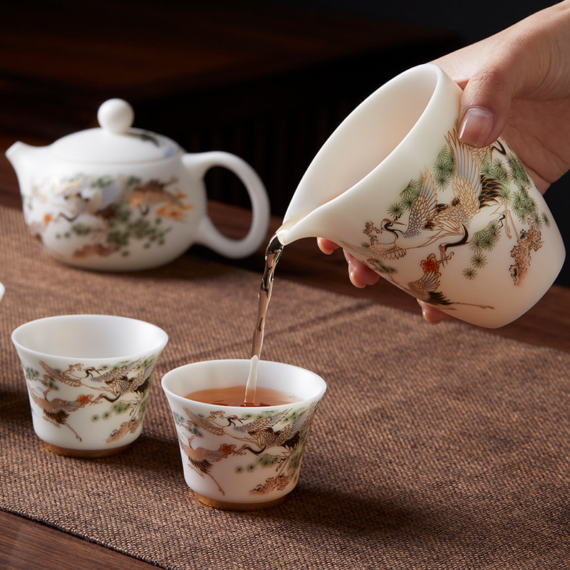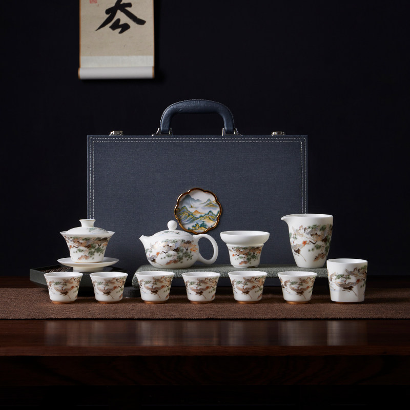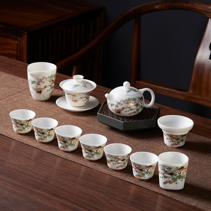 White Porcelain Tea Set Suit Home Light Lavish High-end Shea Butter Jade Teapot Chaoshan Kongfu Tea Cup Lid Bowl of Courtesy Kit-Taobao