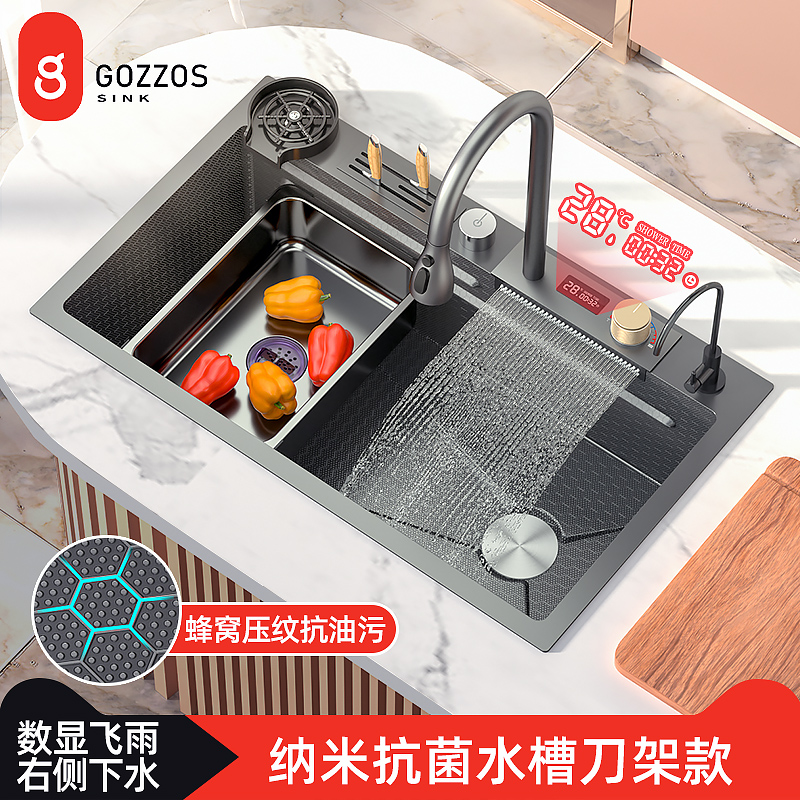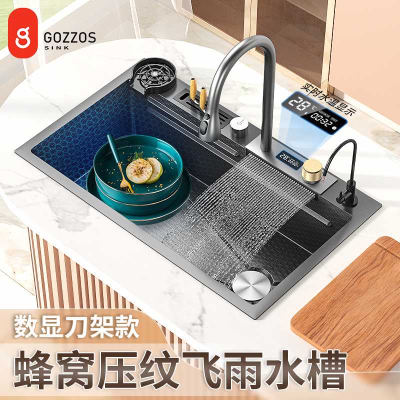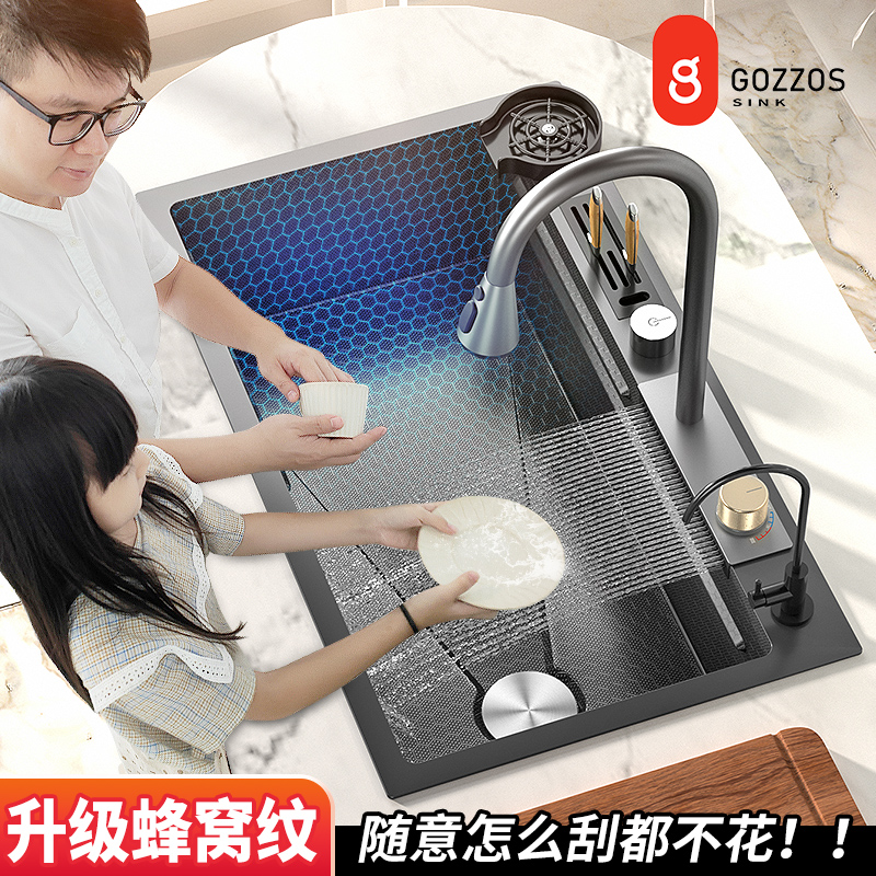 Flying Rain Waterfall Sink Embossing Beehive Kitchen 304 Stainless Steel Large Single Trough Home Washing Basin the dish washing dishes pool-Taobao