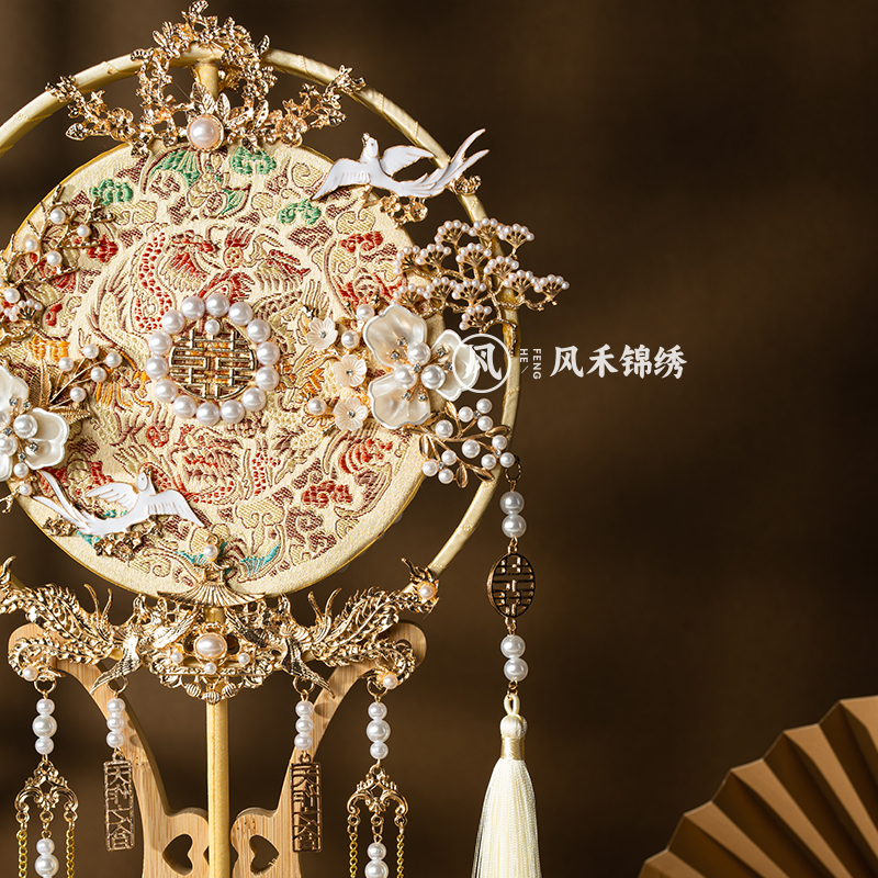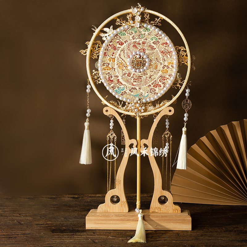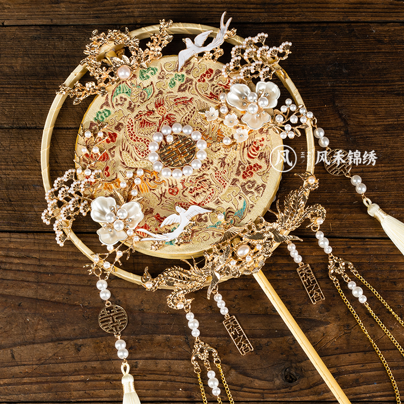 Group fan bride wedding golden show and fan Chinese wedding fan hand retro style wedding fan diy material bag-Taobao