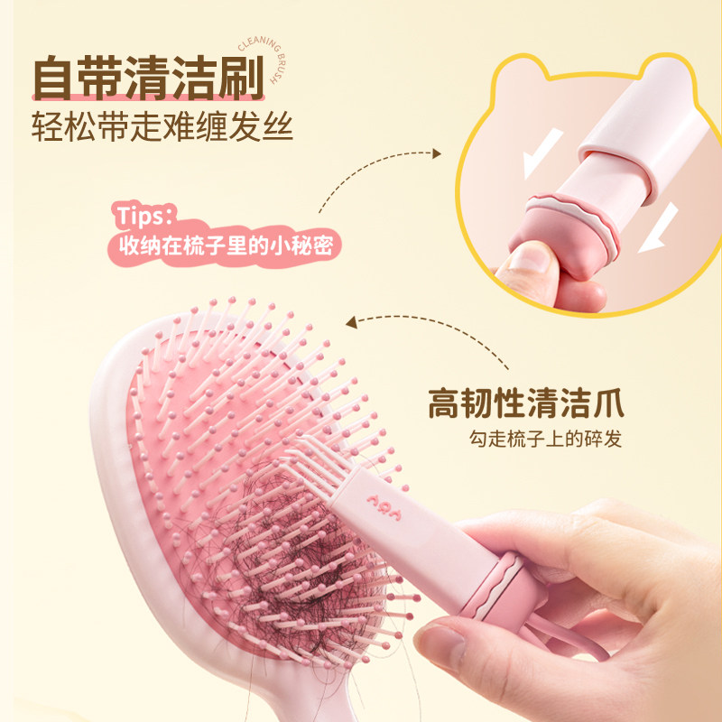 (acacrited duck) yellow-air cushion comb with cleaning brush (hugging bear) pink-air cushion comb with cleaning brush (cute lamb) yellow-flat comb (cute cute rabbit) pink-flat comb (acacrited duck)