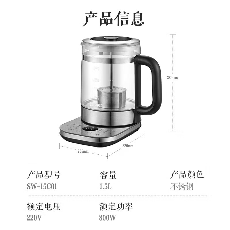 Supoir Wellness Pot 1 5L Boiling Tea Ware Glass Electric Teapot Electric Kettle Electric Kettle Insulation SW-15C01-Taobao