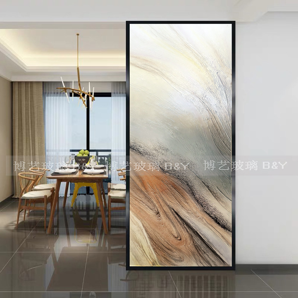 Minimalist Art Glass Genguan Mobile Door Living Room Partition Decoration Glass Toughened Light Lavish Washroom Abstract Modern-Taobao
