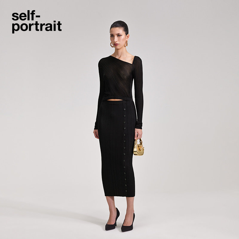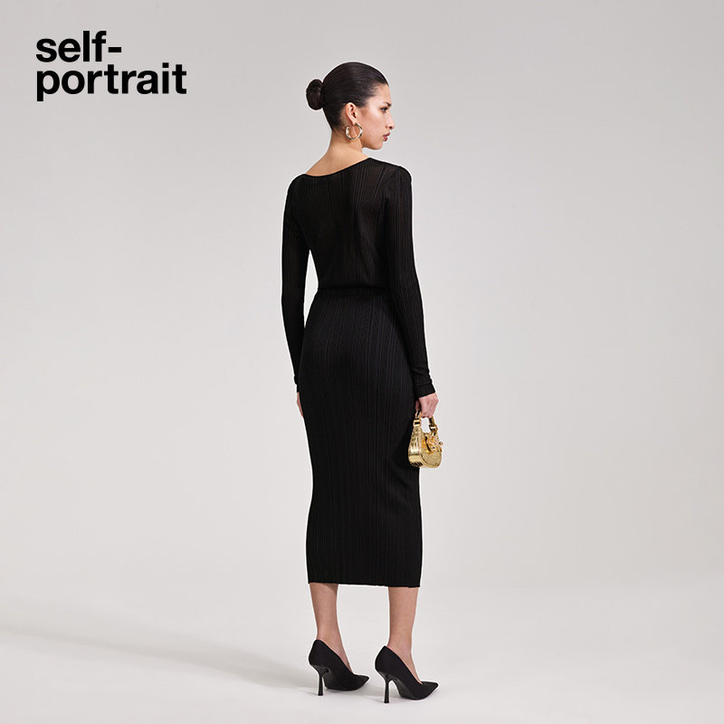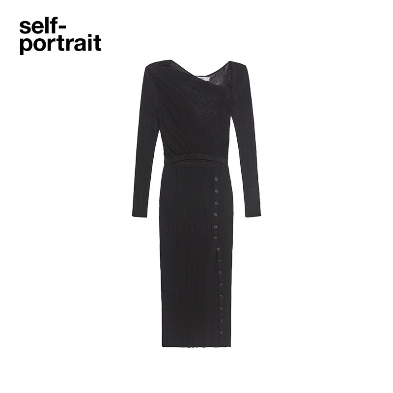self-portrait 2023 early autumn classic black irregular collar open fork step nepotism dress with dress-Taobao