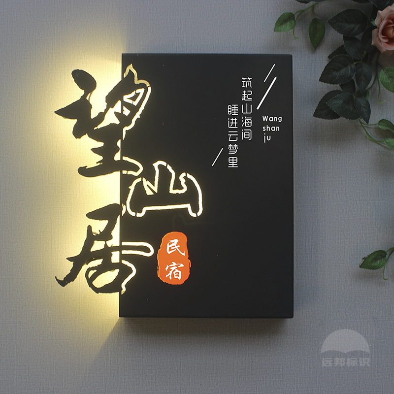 Hollowed-out light box billboard custom wood grain outdoor shop door head luminous character Minjuku company doorplate sign set to do-Taobao