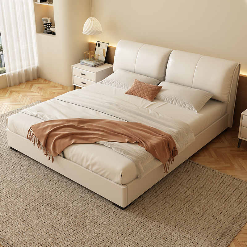 Elephant Ears Bed Master Bedroom High-end Light Luxury Modern Simplicity Genuine Leather Bed Bedroom Soft Bag Backrest Double Bed Cream Wind-Taobao