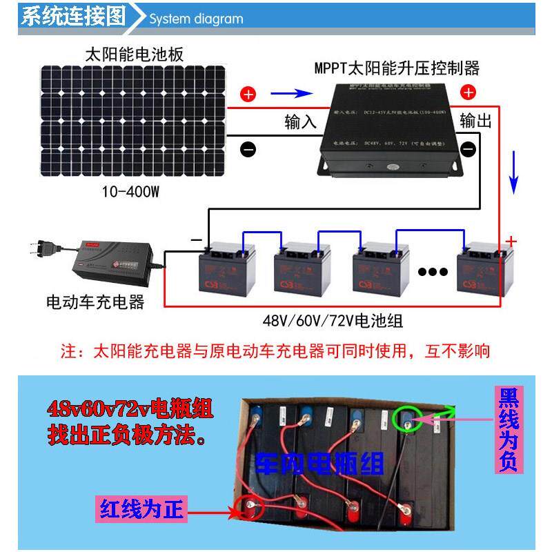 48V60V72 Volt electric three wheeler electric battery car on board 300W watt power panel charging system
