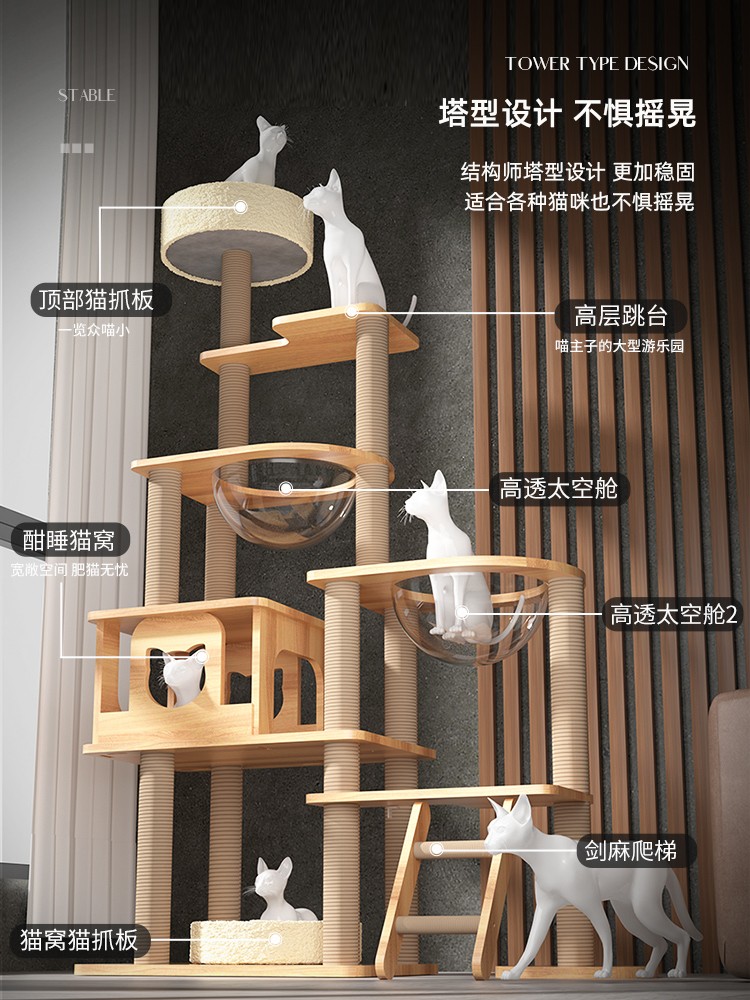 Cat-climbing cat-nest cat tree integrated solid wood space capsule through sky-pillar cat grabbing board climbing shelf sisal kitty supplies-Taobao
