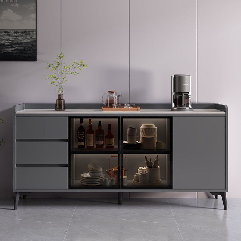 Solid Wood Dining Side Cabinet Modern Minima Home Living Room Rock Plate Tea Water Cabinet Custom Kitchen Leaning Against Wall Glass Locker-Taobao