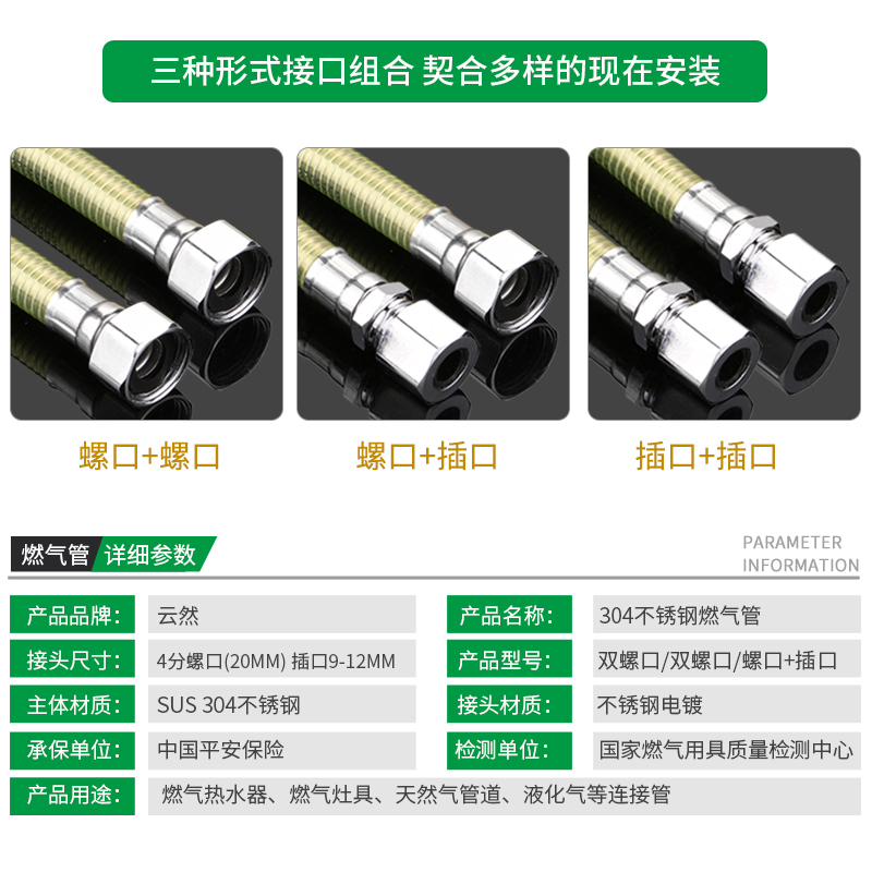 Explosion-proof gas pipe gas pipe 304 stainless steel bellows water heater gas cooker with high-pressure metal hose-Taobao