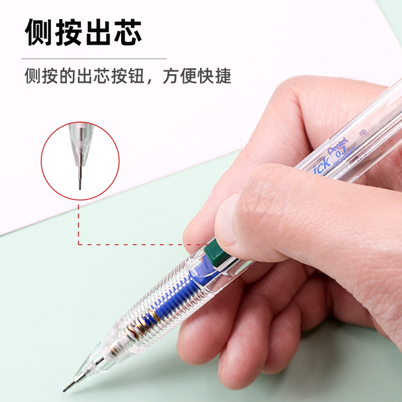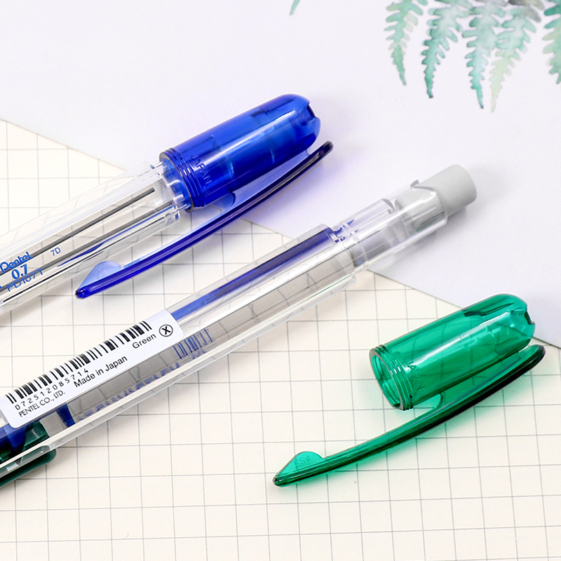 (Self-operated) Japan Pentel PD107T Side-click Mechanical Pencil Student Mechanical Pencil with Eraser 0 7mm 2 Pack