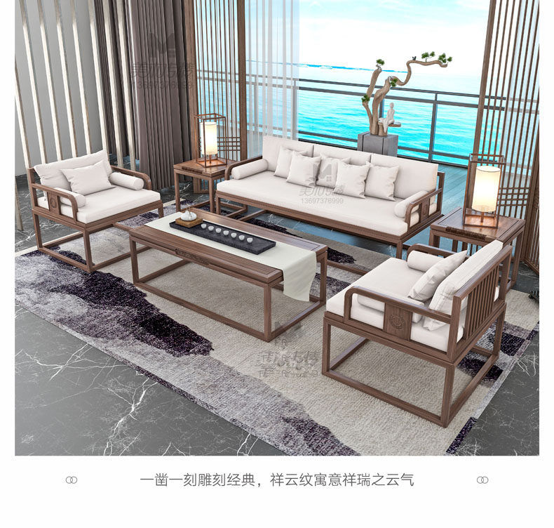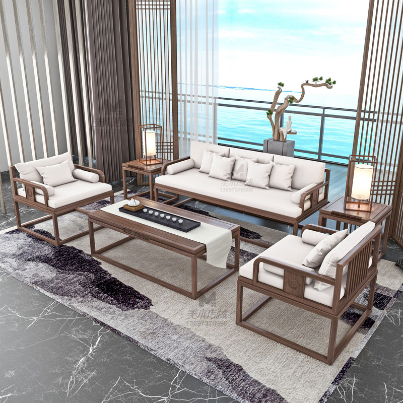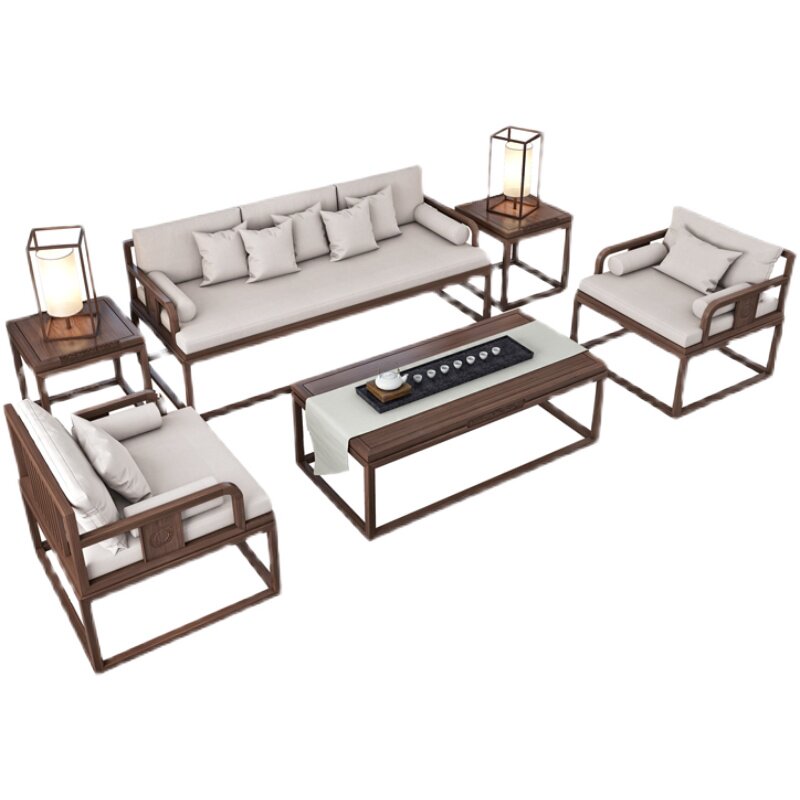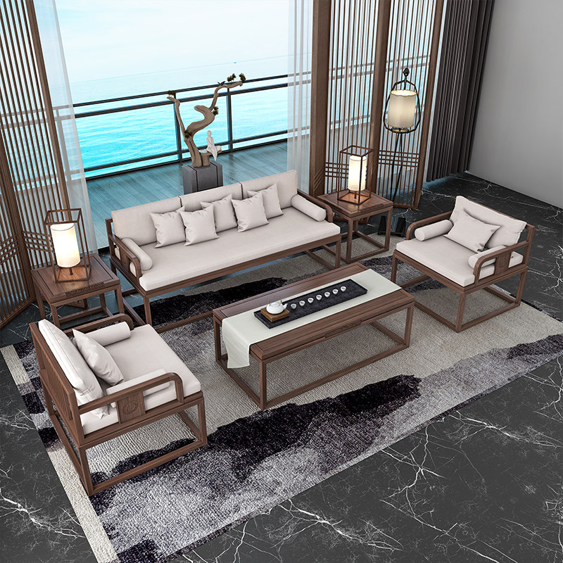 New Chinese style solid wood sofa simple modern light luxury living room combination villa homestay Zen hotel teahouse office home