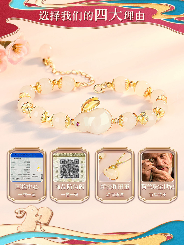 And Tian Baiyu (Xiaojin Rabbit) bracelet certificate rose gift box and field white jade (small gold rat) bracelet certificate rose gift box and field white jade (small golden calf) bracelet certificate rose gift box