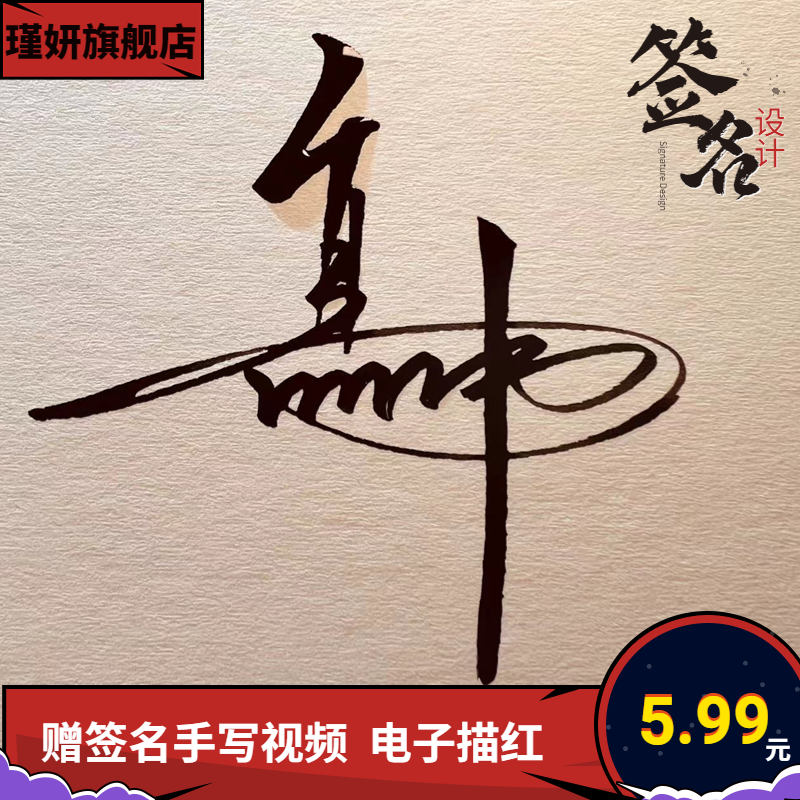 Signature design One paragraph (photo video) Signature design 3 (photo video) Flat word post (design two selected for a copybook) Signature design of 3 models (selection of one to make a seal)