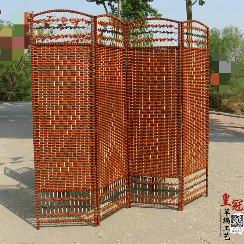 Pastoral straw screen partition living room modern minimalist rattan decoration folding screen solid wood folding mobile bedroom shelter