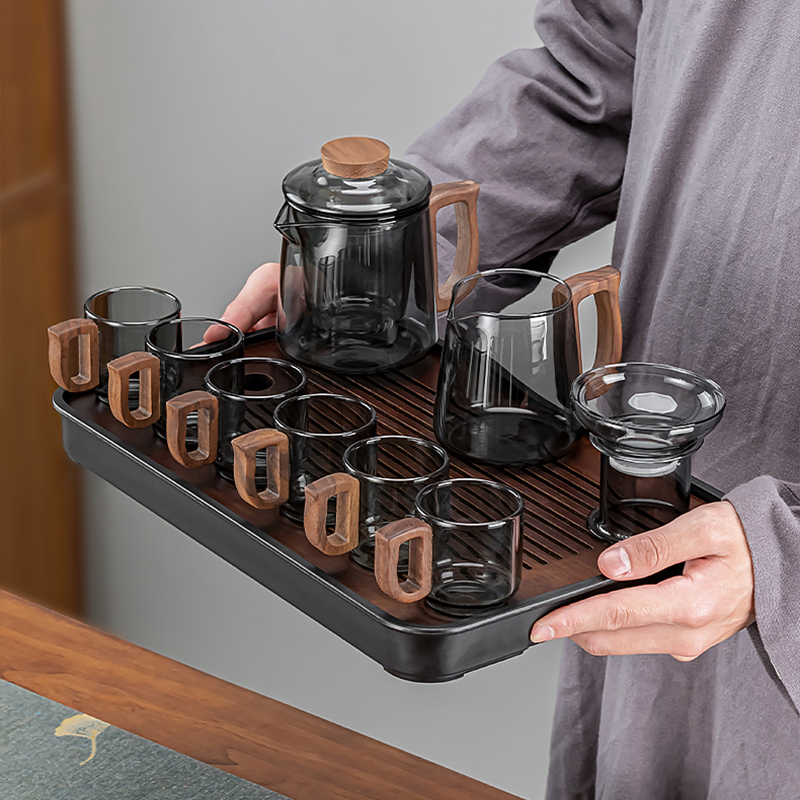 Glass tea set household light luxury small tea plate living room drink teacup Kung fu heat-resistant teapot