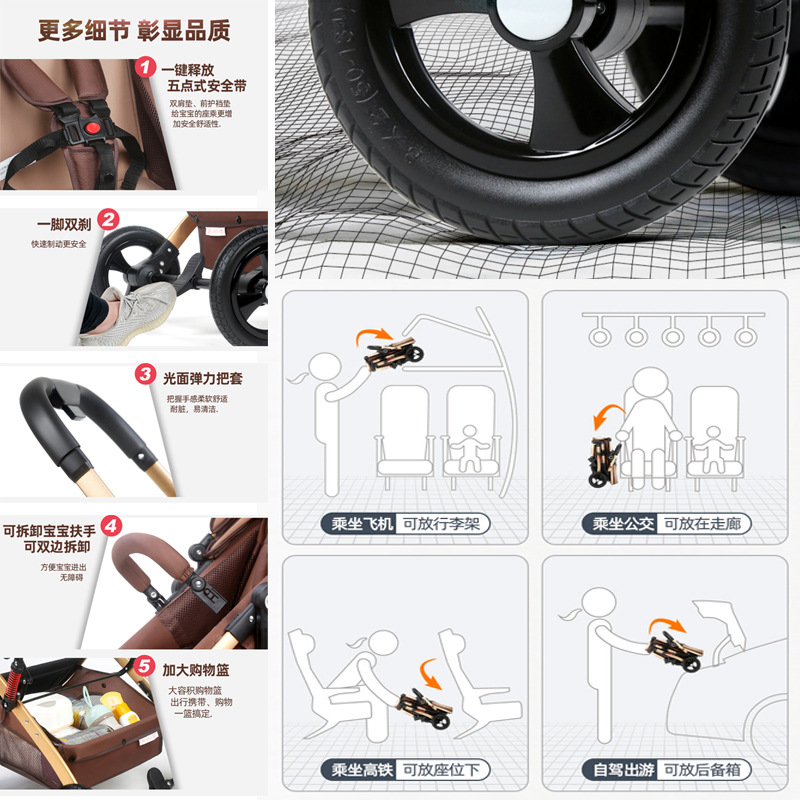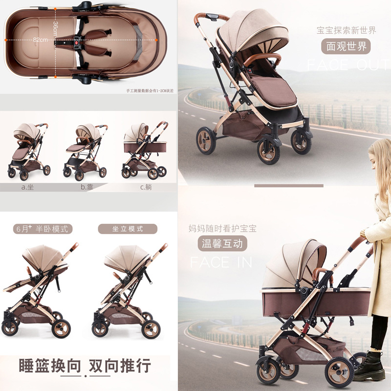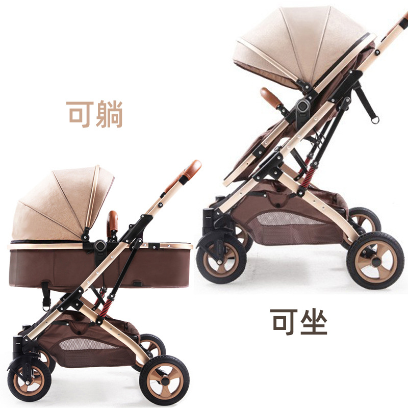 High-view newborn baby stroller can sit, lie down, foldable and carry shock-absorbing two-way sleeping basket stroller