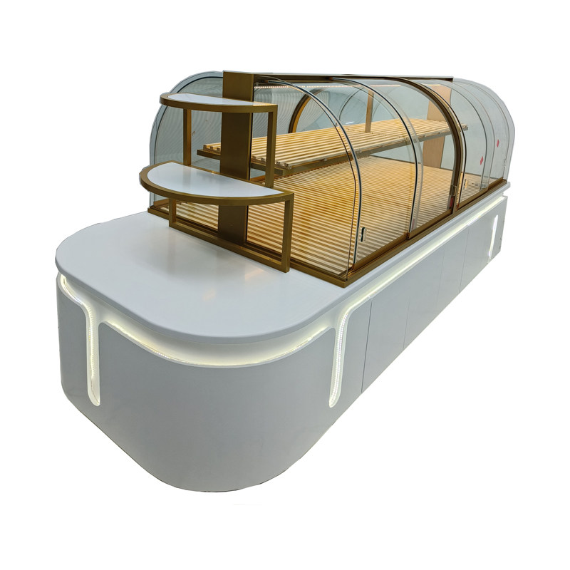 New bakery cabinet curved glass island cabinet solid wood side cabinet cake model cabinet commercial baking pastry display stand
