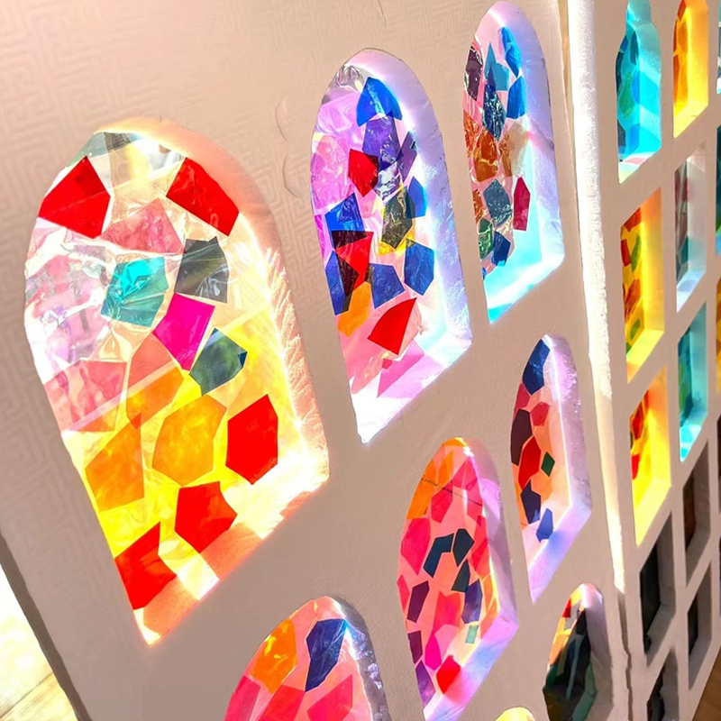 Color Glass Paper Accessories Transparent Nursery Handmade Light Transmission String Lantern Red Teaching Reflective Stars Moon-Taobao