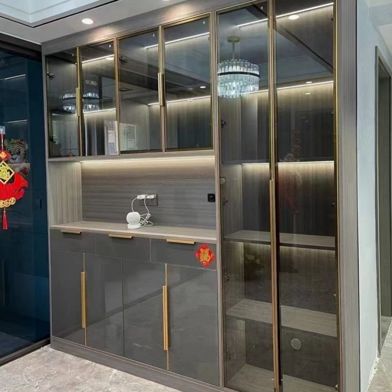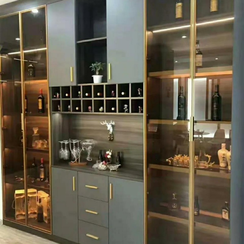 Extremely simple tempered glass wardrobe door custom narrow side aluminum alloy frame wine cabinet door bookcase door dining side cupboard door set to do-Taobao