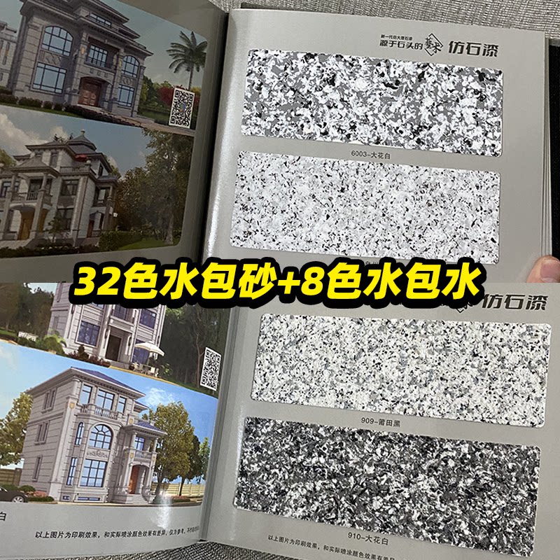 Imitation stone lacquered plate Water coated sandwater wrap water colour card 40 colour imitation marble lacquer 5D external wall paint colour card-Taobao