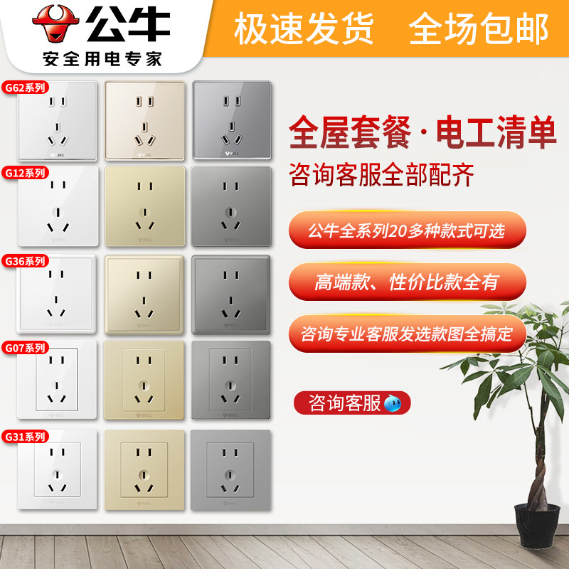 Full house package with single link five inserts (starry sky grey) partial lower three holes (starry sky grey) concealed sockets (starry sky grey) inline socket (ivory white) Three eyes 16A (starry sky grey)