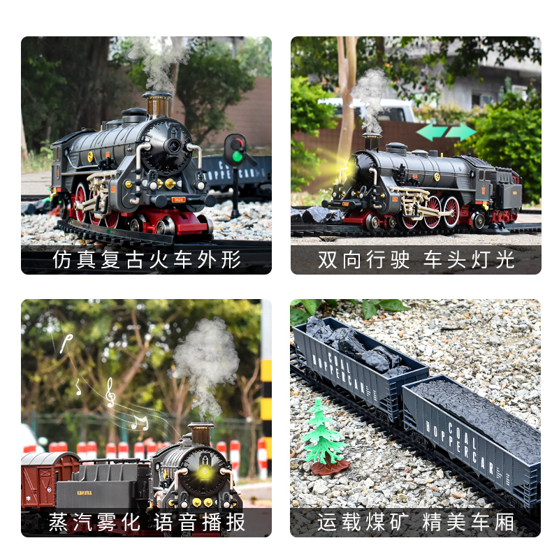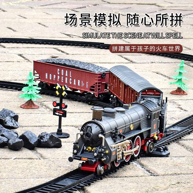Children Electric Small Train Simulation Retro Alloy Train Steam Track Model Toys Christmas Boy Gift-Taobao