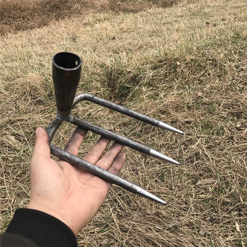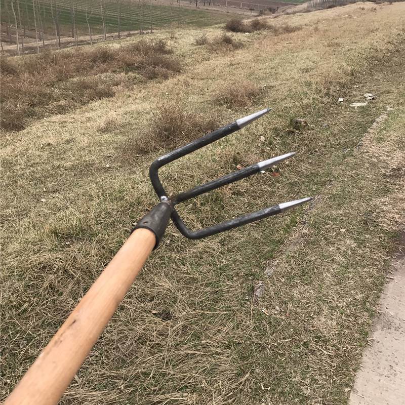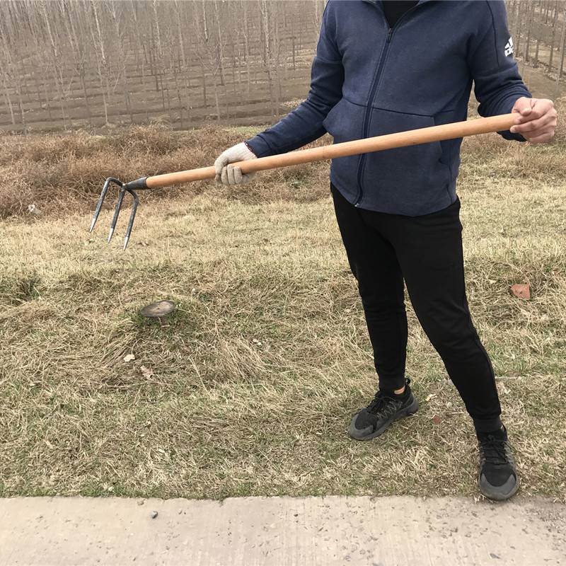 Large two-tooth rake No handle Small four-tooth rake with short handle Large four-tooth rake with 1 2-meter wood handle Small three-tooth rake No handle Large two-tooth rake 1 2