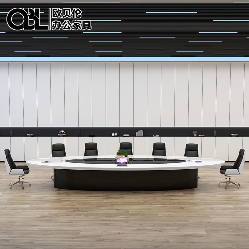 White Baking Lacquered Oval Meeting Table Long Table Brief Modern Fashion Talks Table Large Meeting Room Table And Chairs Combination-Taobao