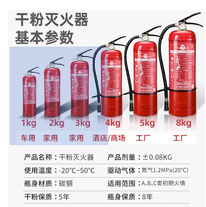(1 kg distribution nozzle) Vehicle (2 kg distribution nozzle) Vehicle (3 kg distribution nozzle) Domestic (4 kg matching leather pipe) Shop company with 2 4 kg fire extinguishers (5 kg matching leather pipe) cabin