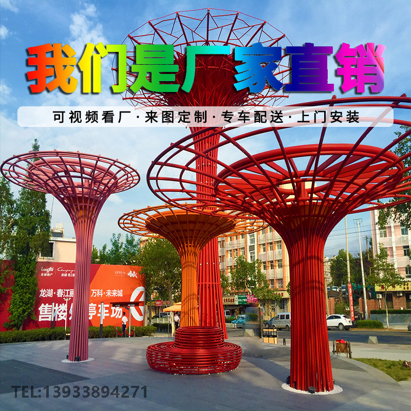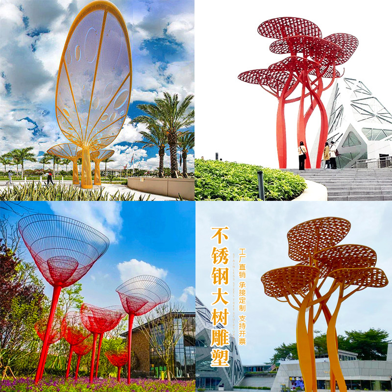 Custom large stainless steel tree sculpted mirror metal steel structure hollowed-out leaves abstract treeSquare pendulum-Taobao