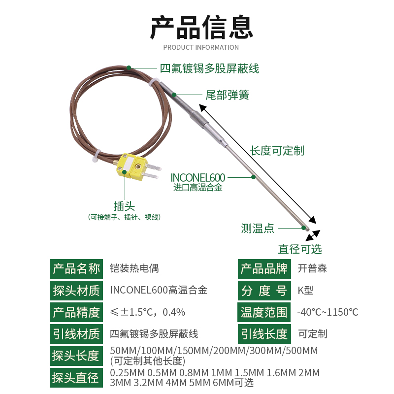Capson imported K-type armored thermocouple temperature measuring instrument probe high temperature furnace temperature control temperature sensor T-type