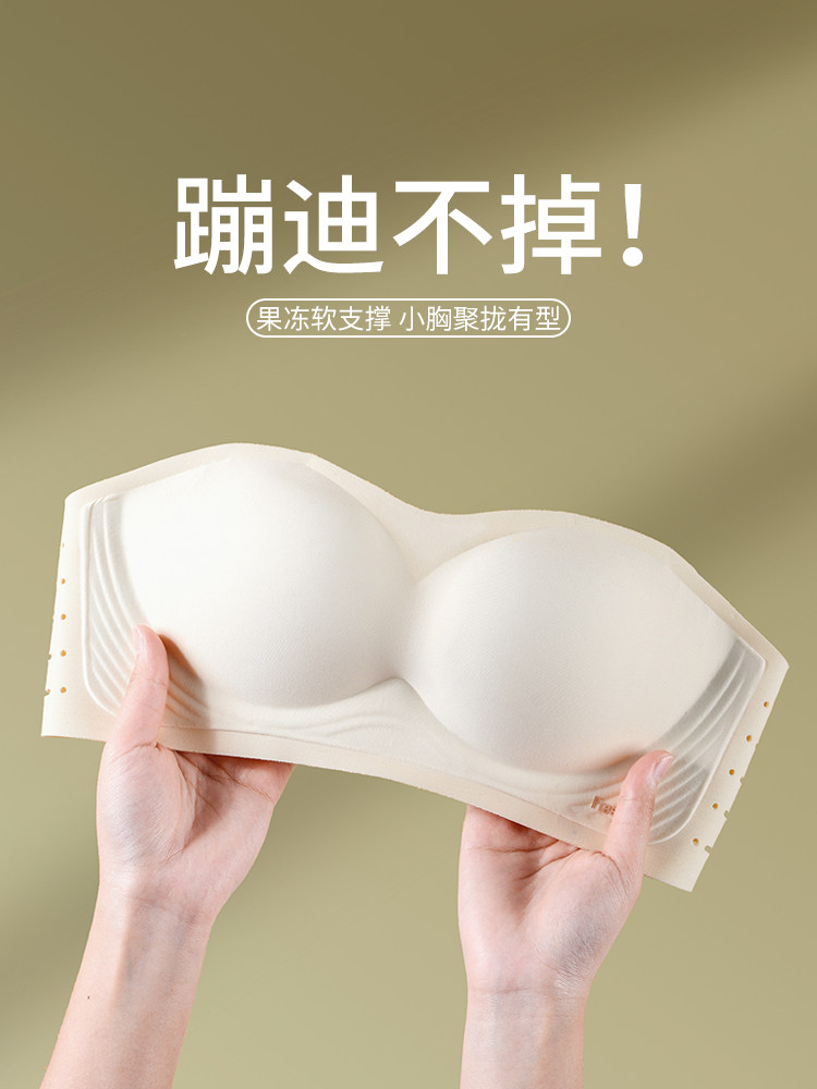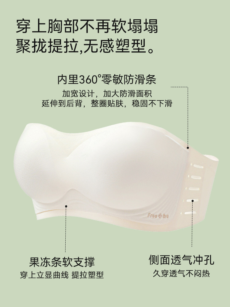 Cat person obliterted without shoulder strap lingerie female non-slip gathering small breasts with large wrap chest thin and anti-fall invisible bra-Taobao