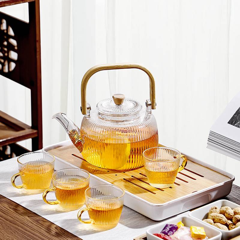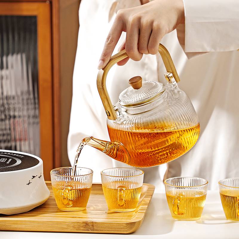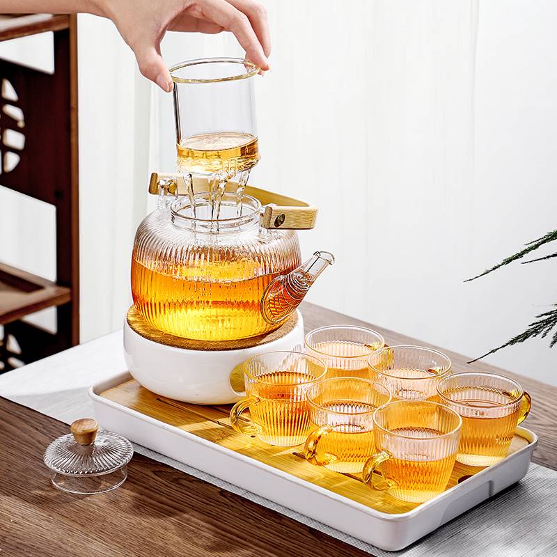 Heat-resistant glass flower teapot set candle heating electric ceramic stove around the stove to cook fruit teapot cup afternoon tea tea set