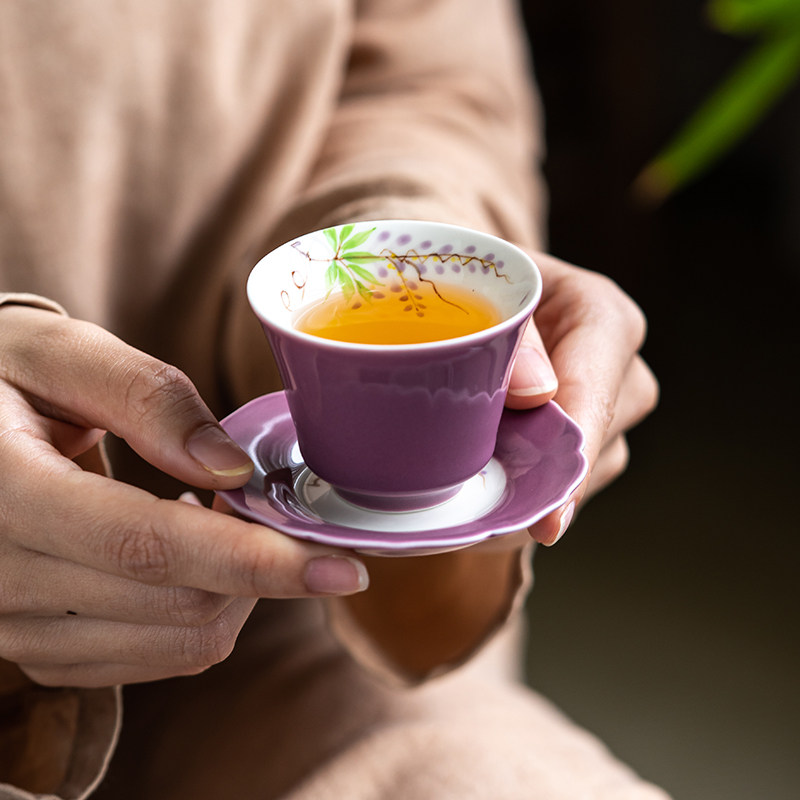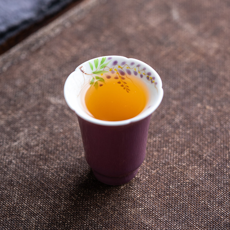 Hand Painted Horseshoe Cup (Purple Vines) Hand-painted Horseshoe Cup (Green Peach Blossom) Hand-painted Horseshoe Cup (Rouge Red Peach Blossom) Tasting Cup-Pink Peach Flower Tasting Cup-Delight Tasting Cup-Purple Vines Flower Tasting