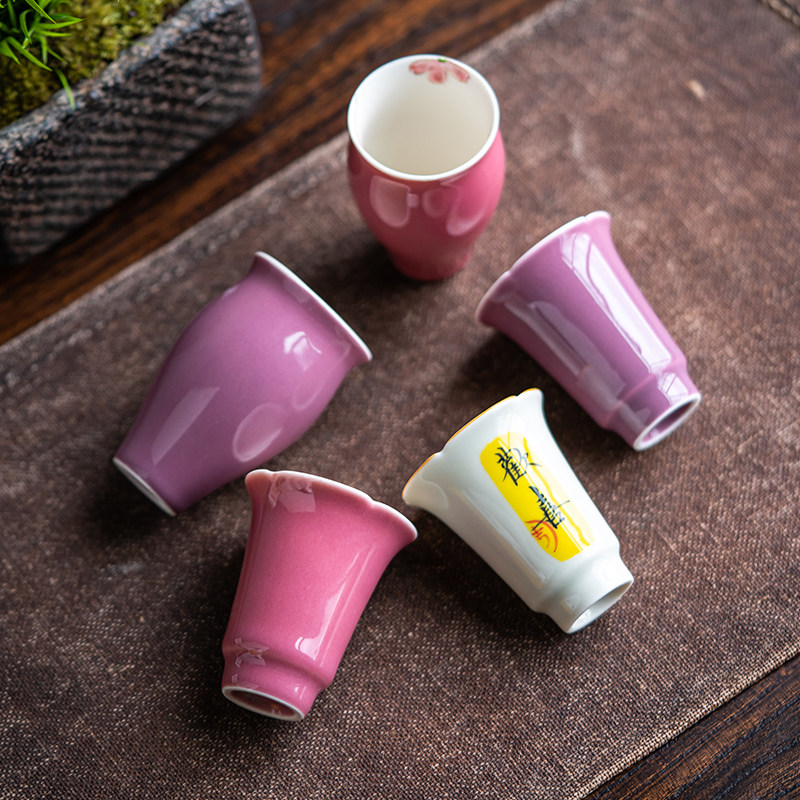 Pure hand painted pink ceramic personal tea cup female special master single cup with cup cushion not bronzed for home tasting cup-Taobao