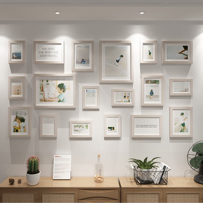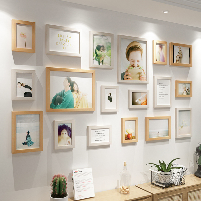 Living room simple pendant picture frame framed photo frame wooden wall hanging photo wall free punching display frame