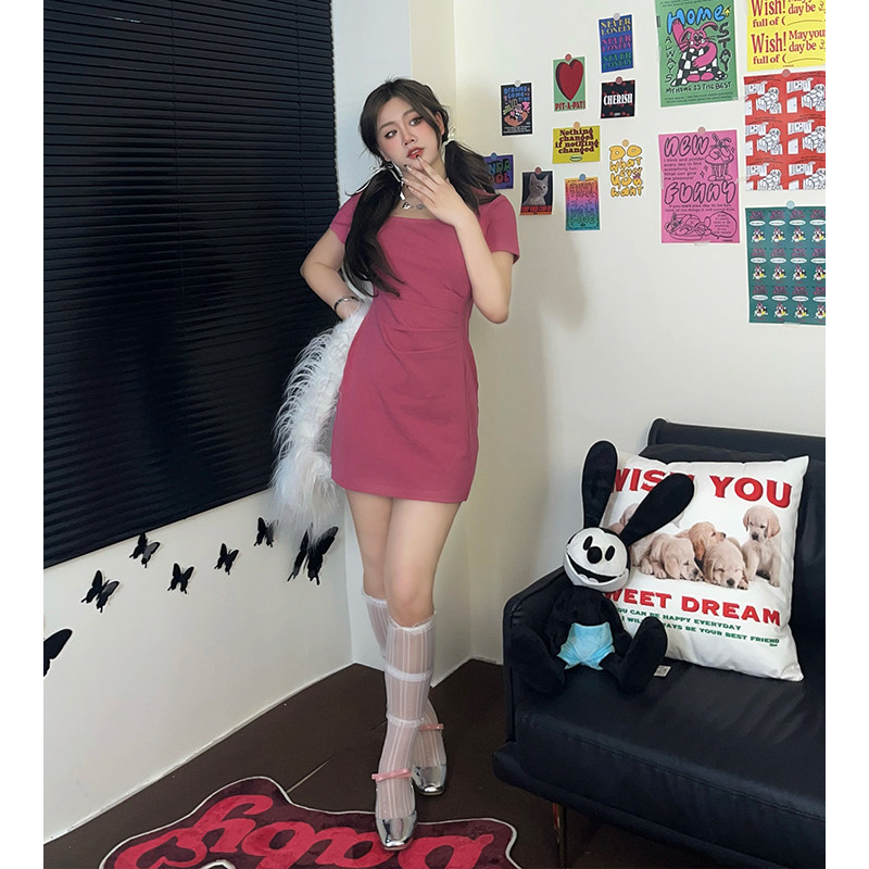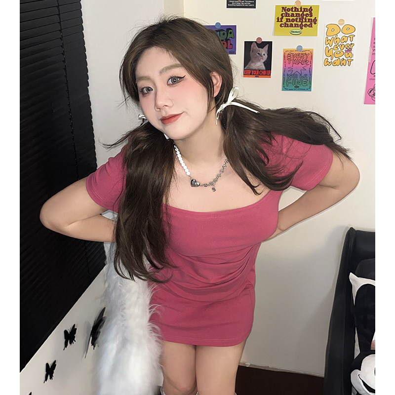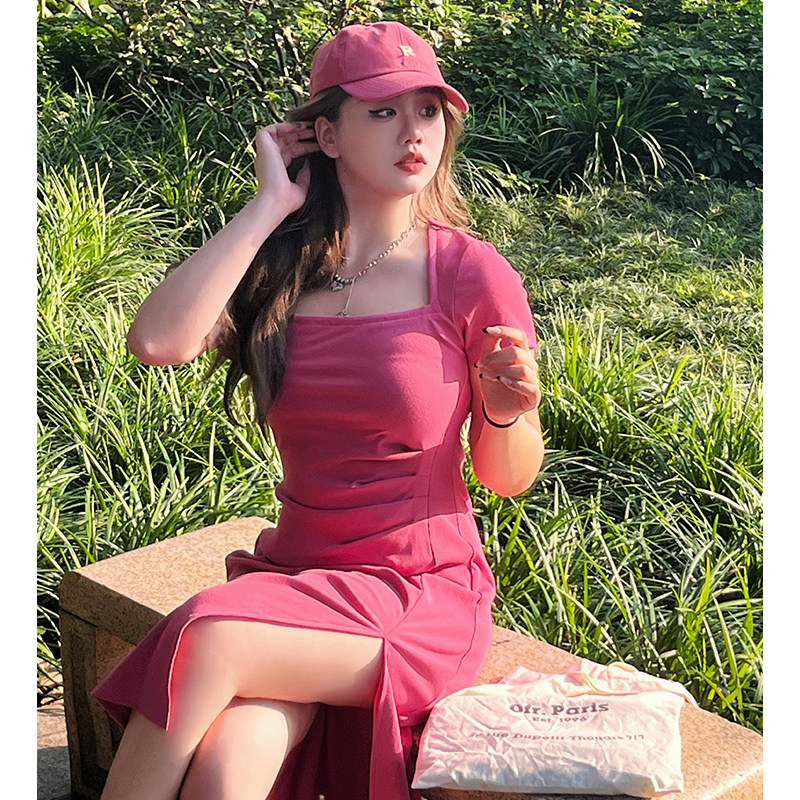 Fbanround big acumen micro-fat mm pink square collar with dress cover with slim dress children Summer design sensant skirt-Taobao