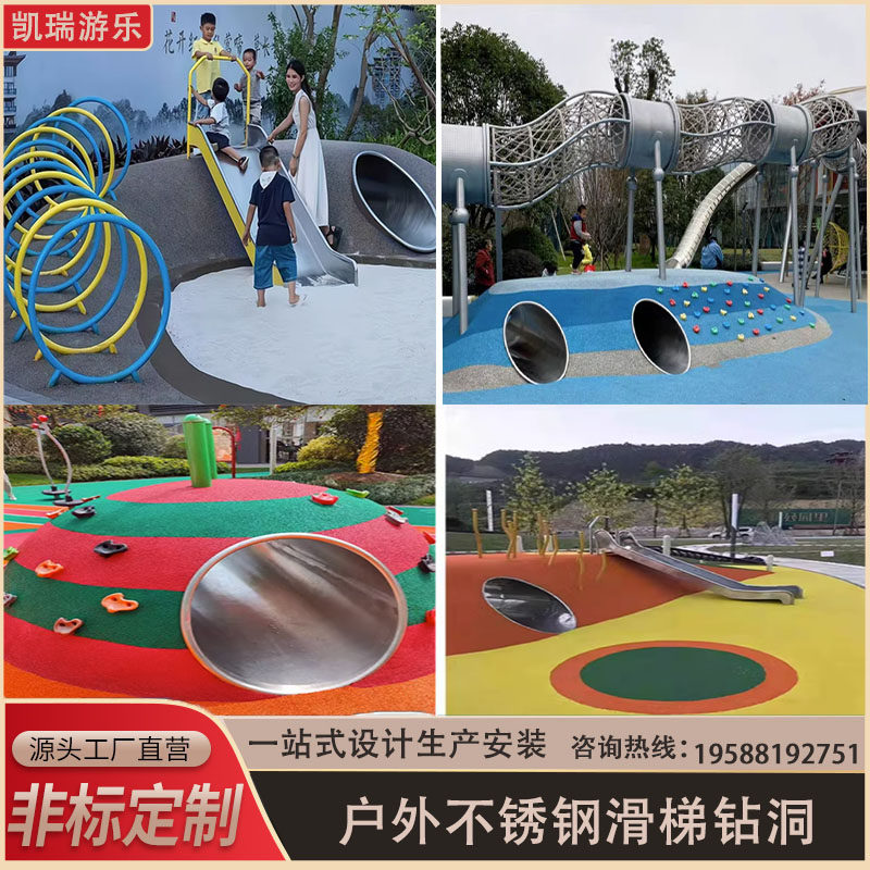 Outdoor Children Stainless Steel Slide Ladder Drill Hole Tunnel Nursery Park Scenic Area Large Pleasure Facilities Non-Scale Custom-Taobao