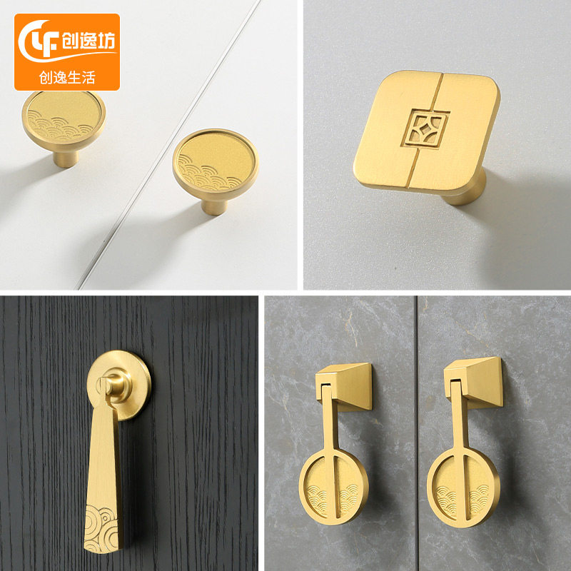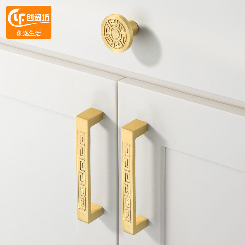 New Chinese Handle Cabinet Door Imitation Antique Bronze Cabinet Subdrawer Pull Ring Door Handle Gold Furniture Wardrobe Brass Handle-Taobao