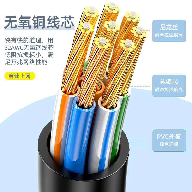 Mountain Zee 6 super six types of network cable thin line CAT6A class without oxygen copper 10,000 trillion high-speed finished wire Home computer broadband network routers switch 7-8 class jumpers 5m3 m SZB-3005 -