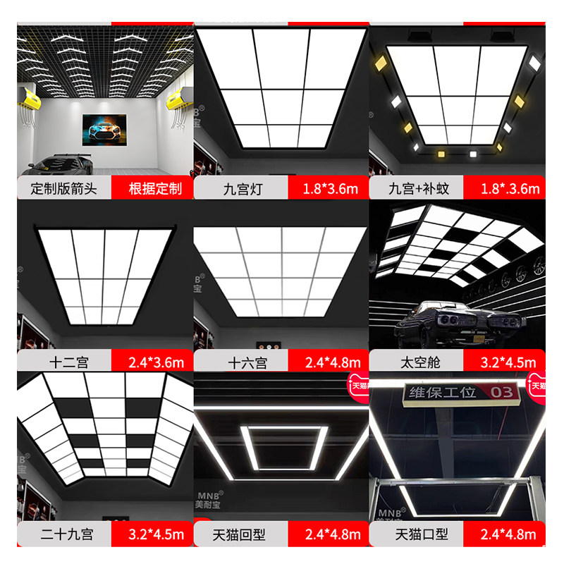 Car wash Shop Cellular Light Machine Repair Work Position Lights Car Beauty Shop Back Type Light Cling Film Dedicated Led Nine Palace Lattice Lights-Taobao