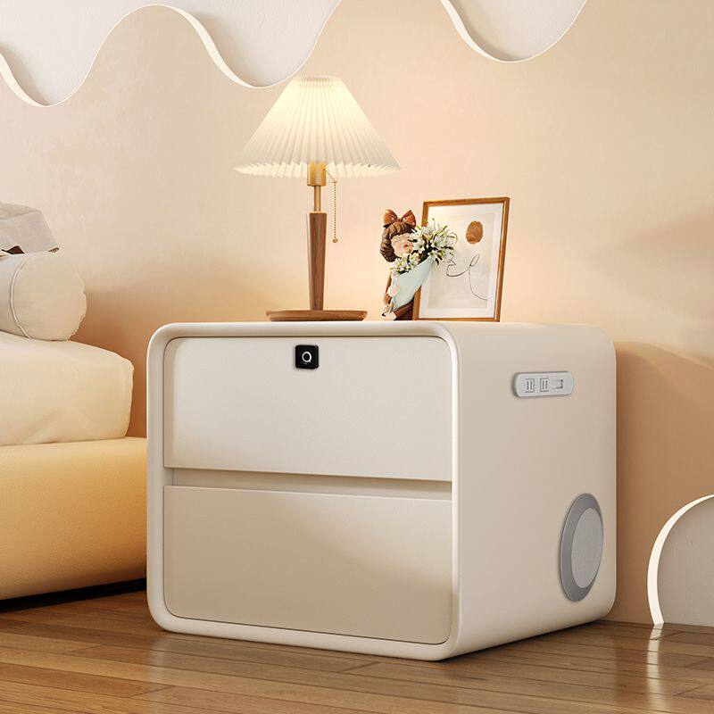 Smart Bed Head Cabinet Extremely Simple Cream Wind Solid Wood Light Lavish Multifunction Charging Sound Safe Fingerprint Lock Locker-Taobao