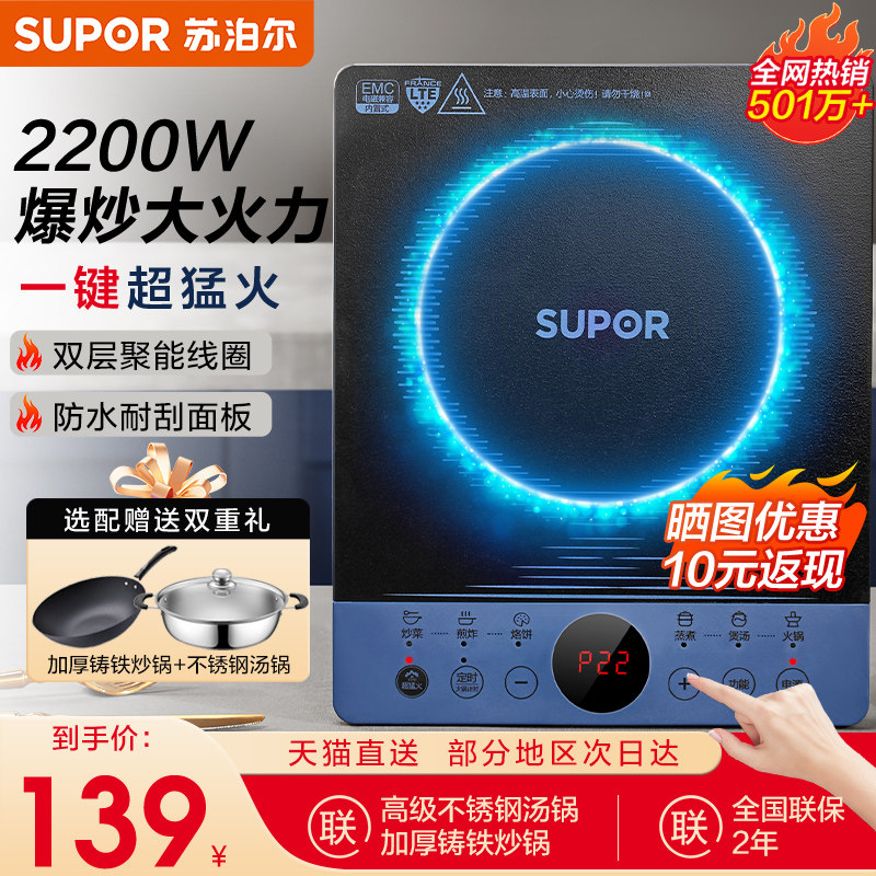 Supoir induction cookers Home Hot pot Fried Vegetables Smart Energy Saving Multifunction One Body Big Firepower Battery Furnace Suit-Taobao