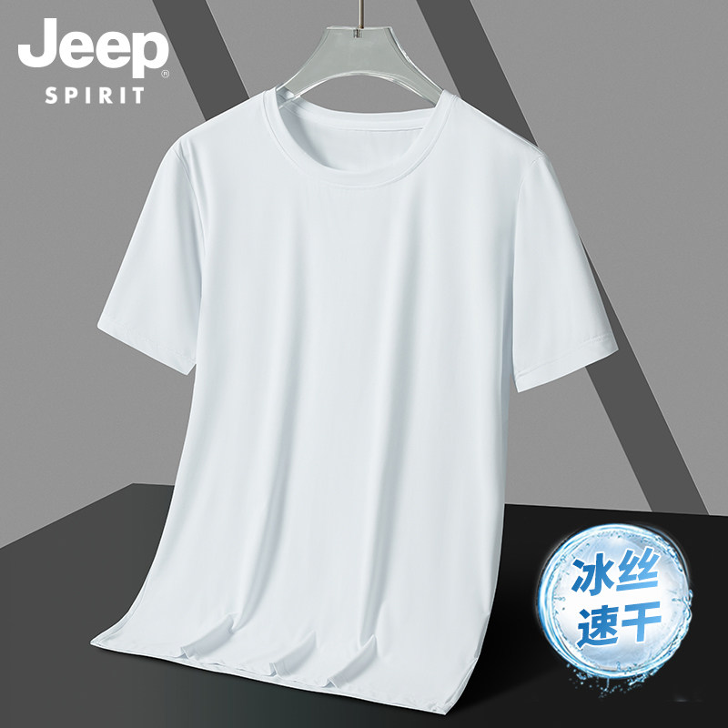 JEEP Summer Ice Silk Short sleeves T-shirt Men's speed dry clothes Compassionate Men Quick Dry Clothing Thin men's sportswear T-shirts-Taobao