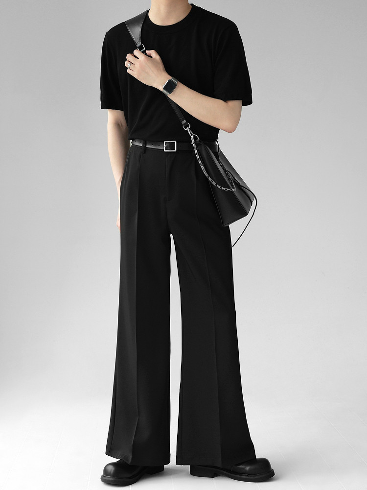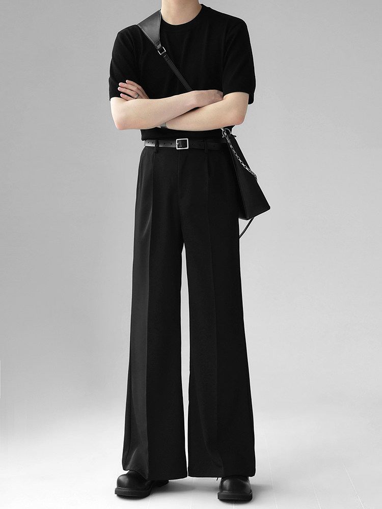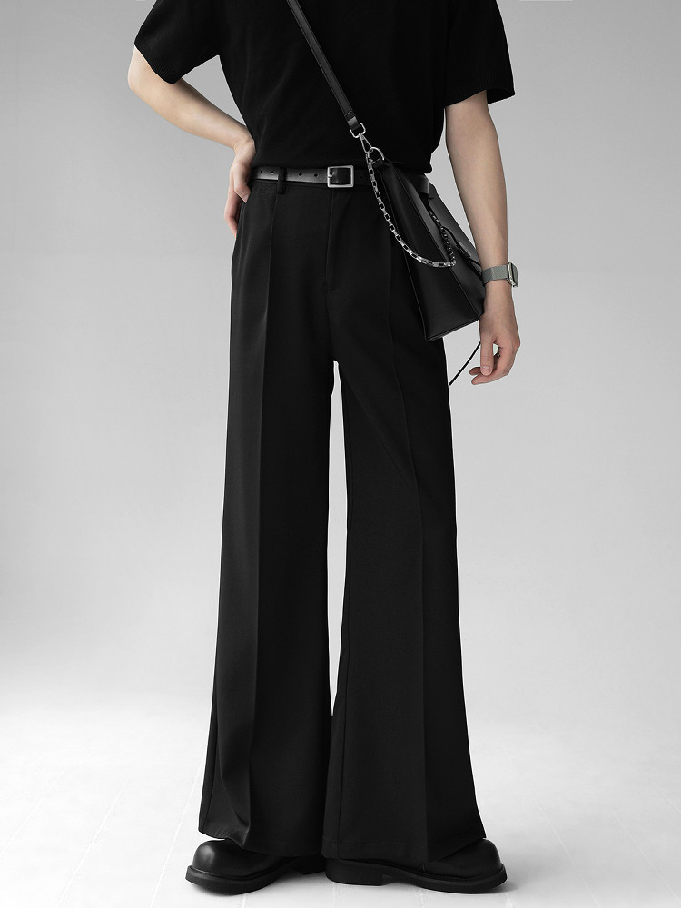 High-end trousers for men and women loose drooping and slightly bell-bottomed pants solid color ten pants for free black floor pants wide-leg pants